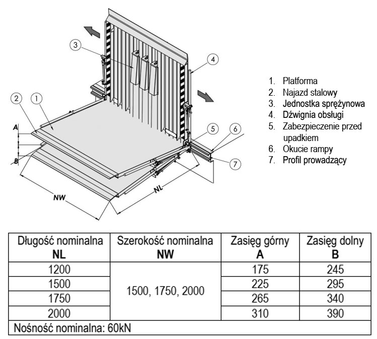 Mostki przeładunkowe to urządzenia montowane na krawędzi rampy załadowczej (stałej) ułatwiające rozładunek lub załadunek samochodów. W stanie spoczynku mostek ustawiony jest w pozycji pionowej. Po dojechaniu samochodu dostawczego w pobliże rampy pomost zostaje opuszczony na powierzchnię skrzyni ładunkowej samochodu tworząc ciąg komunikacyjny. Zastosowany mechanizm sprężynowy, równoważący wagę pomostu, umożliwia wygodną obsługę mostka jednej osobie. Pomosty wykonywane są w różnych długościach i szerokościach w zależności od potrzeb Klienta. Długość mostka dobiera się wg potrzeby zniwelowania różnic poziomów pomiędzy rampą a skrzynią ładunkową samochodu. Należy pamiętać, że do bezpiecznych przeładunków po pochylni (pomoście/mostku) będziemy zaliczać takie, które odbywają się pod kątem nie większym niż 6°. Mostki produkowane są w wersji stacjonarnej lub przesuwnej, mocowanej na szynie. Ocynkowana konstrukcja pomostu, jest odporna na działanie warunków atmosferycznych. Mostki do rampy mocuje się za pomocą spawów. Wymagane jest aby rampa była wykończona ceownikiem min. 180 mm. Przy mniejszych profilach należy zastosować okucie PZB.